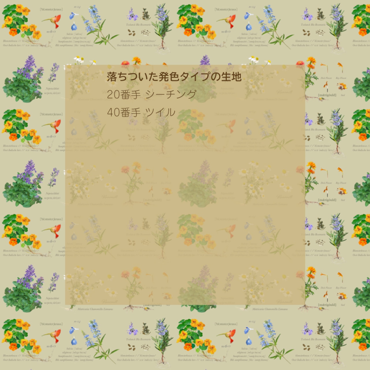 ・懐かしい感じがする花柄は、朝の菜園で摘みたてのハーブをあしらったデザイン。
